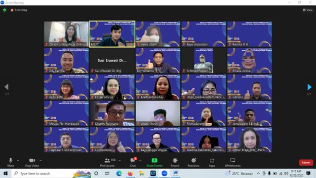 Webinar dihadiri secara daring oleh Rektor UNPRI, Prof. Dr. Chrismis Novalinda Ginting, M.Kes, WR I UNPRI, Abdi Dharma, S.Kom, M.Kom, Ketua LPPM UNPRI, Edy Fachrial, S.Si, M.Si sebagai ketua pelaksana acara, perwakilan dari dekan, ketua program studi, ketua biro, dosen, dan civitas akademia UNPRI Medan.